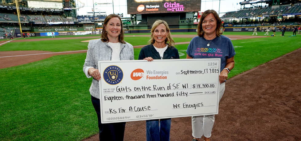 The We Energies Foundation is donating nearly $20,000 to Girls on the Run in partnership with the Brewers Community Foundation.  The donation is part of Ks for a Cause, a special program where the We Energies Foundation makes a $25 donation for every strikeout by a Brewers pitcher at home games.