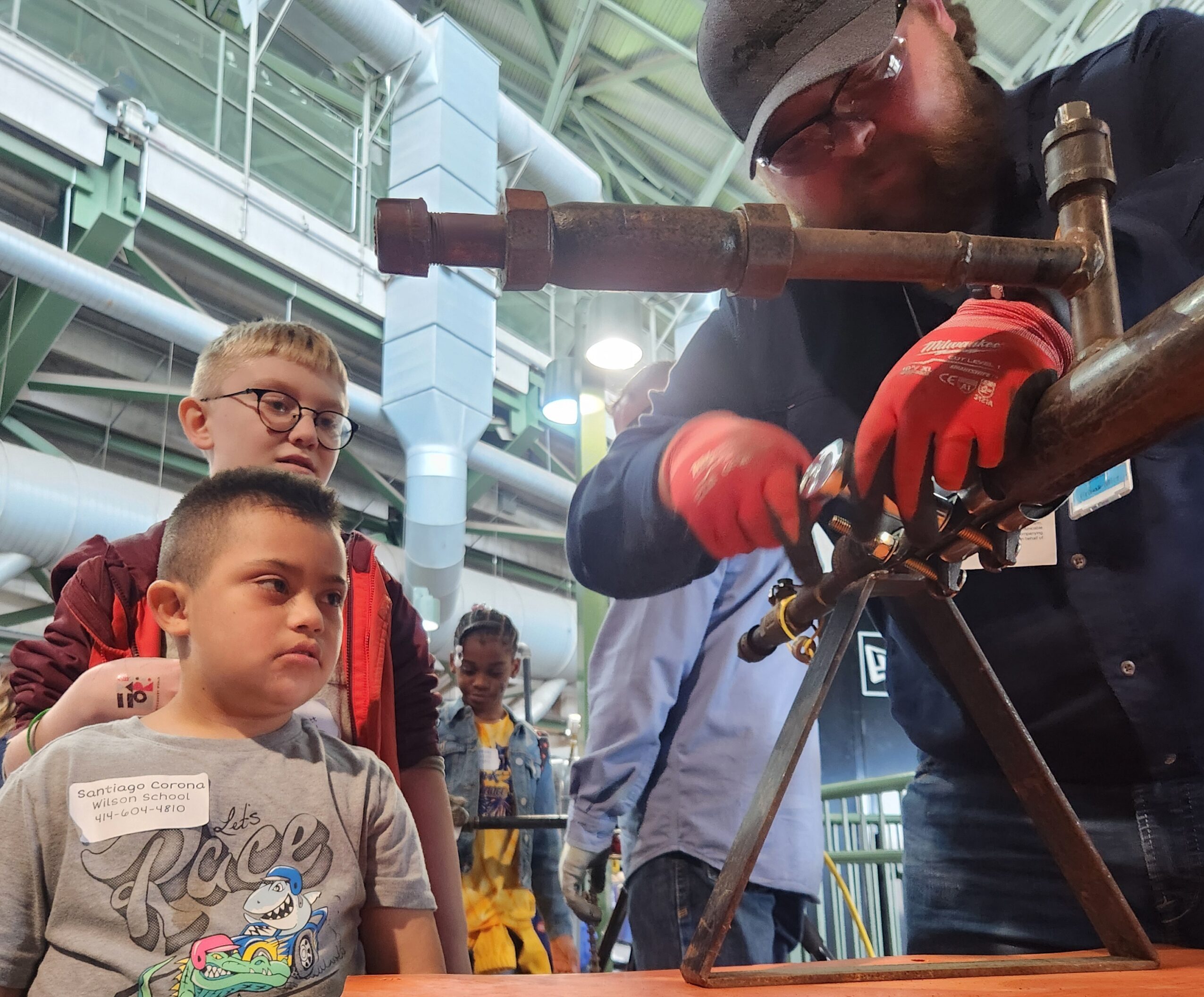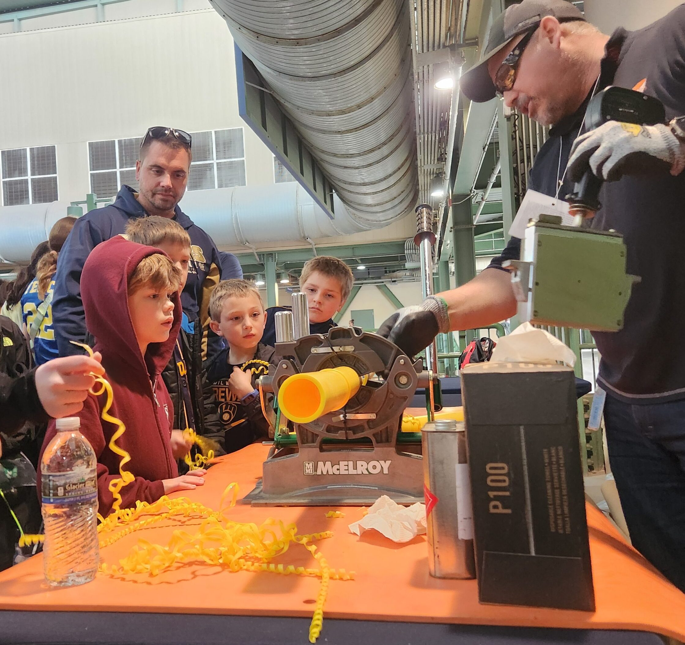 Employees Tim Burke, Frank Mirr, Matt LeDuc, Kelly Skiles and Brett Norder made a pitch for natural gas safety. Kids discovered components of a natural gas distribution system, including the pressure reduction that takes place throughout the system Gas meters with windowed fronts allowed the students to see how they function. Students were given demonstrations of how crews fuse pipes together with a hot-plate heater. They seemed fascinated with how the pipe came together, and collected the plastic ribbons created when the pipe was cut.