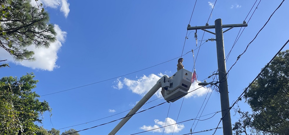 The work setting is unique — with snakes, palm trees and hot October weather — but the focus remains the same. Crews are clearing trees, replacing damaged poles and restringing power lines. They are part of an army of tens of thousands of workers from across the country focused on getting the lights back on.