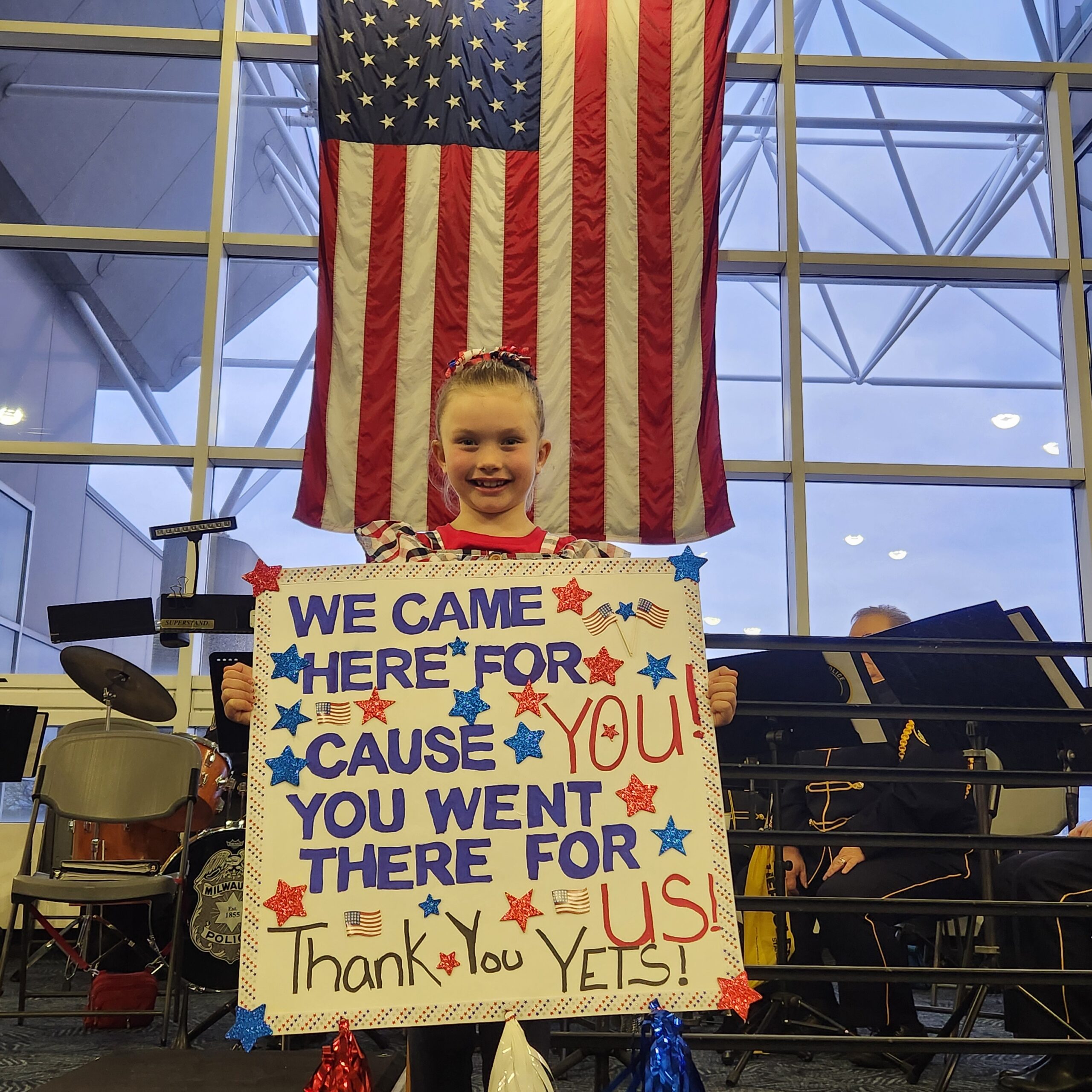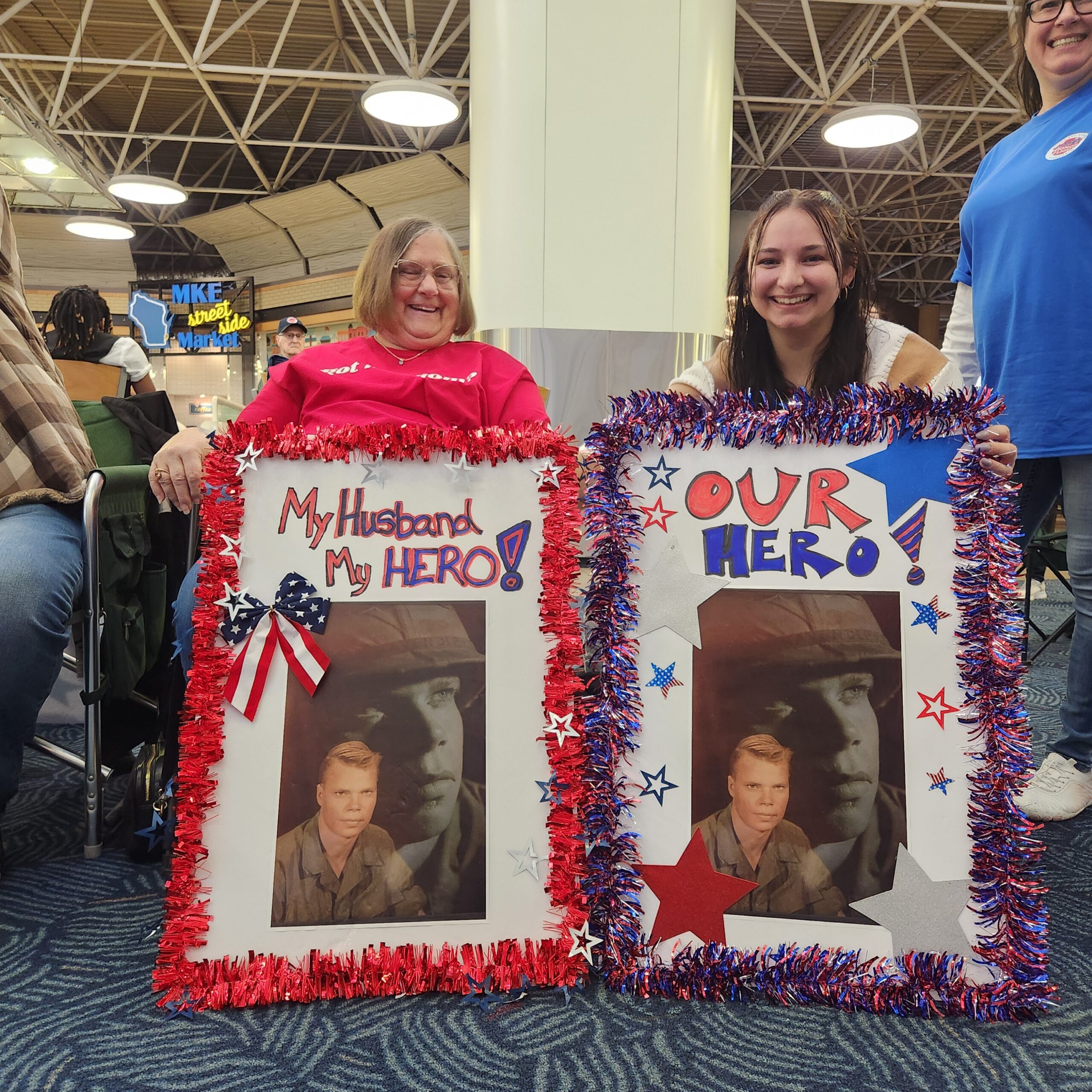 Over 1,000 people cheered on the veterans as they arrived back in Milwaukee.